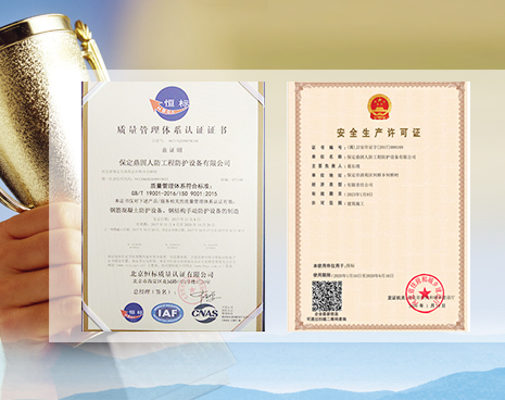 通過ISO9001質量管理體系認證、系國家人民防空辦公室批準的人防防護設備定點生產和安裝企業